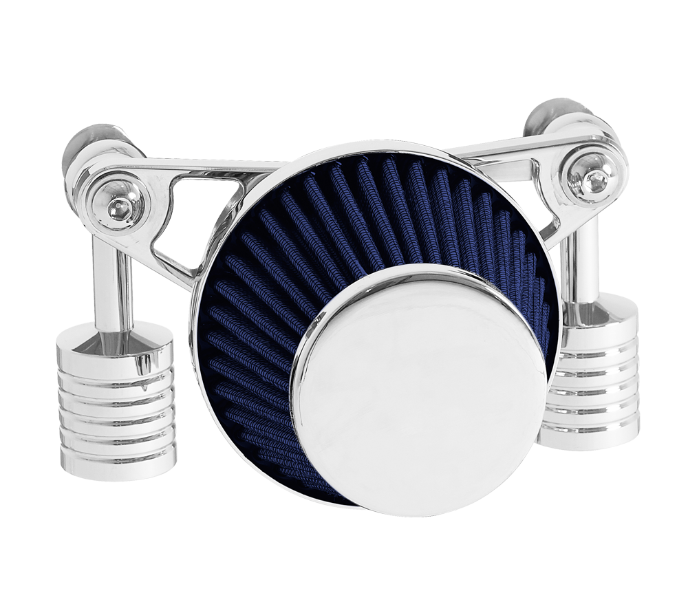 With a clean compact design, the Mini Max offers a mighty punch of performance with a small footprint. Designed to give the appearance of an extension of the carburetor, the look offers an alternative to the forward facing air cleaner. The symmetric look provides even further styling preference. Multiple finish options, and colored filters are available to complete the look.