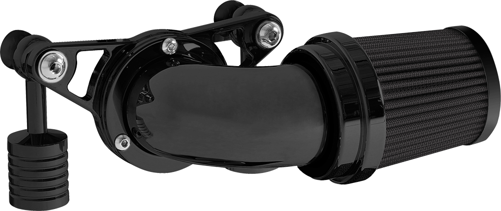 A popular choice for many riders. The swept forward design offers performance and style that lends this air cleaner to the top of our list. Attention to detail is abundant from the design to the manufacturing process. The deep pleated standard air filter with its cylinder style shape flows smoothly into the mandrel bent elbow providing a clean transition from air filter to elbow. The elbow is then bolted to our billet aluminum mounting kit for a complete air cleaner assembly that is proven to turn heads and provide greater air flow.