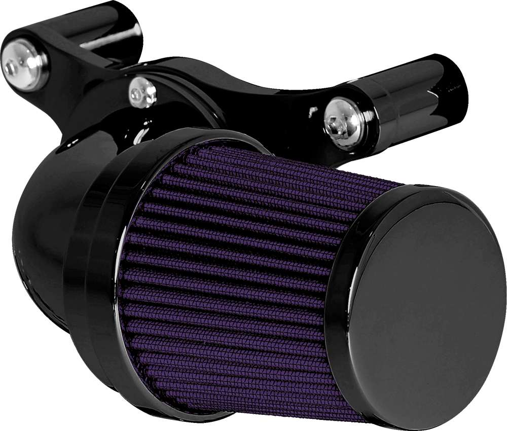 A popular choice for many riders. The swept forward design offers performance and style that lends this air cleaner to the top of our list. Attention to detail is abundant from the design to the manufacturing process. The deep pleated standard air filter with its cylinder style shape flows smoothly into the mandrel bent elbow providing a clean transition from air filter to elbow. The elbow is then bolted to our billet aluminum mounting kit for a complete air cleaner assembly that is proven to turn heads and provide greater air flow.