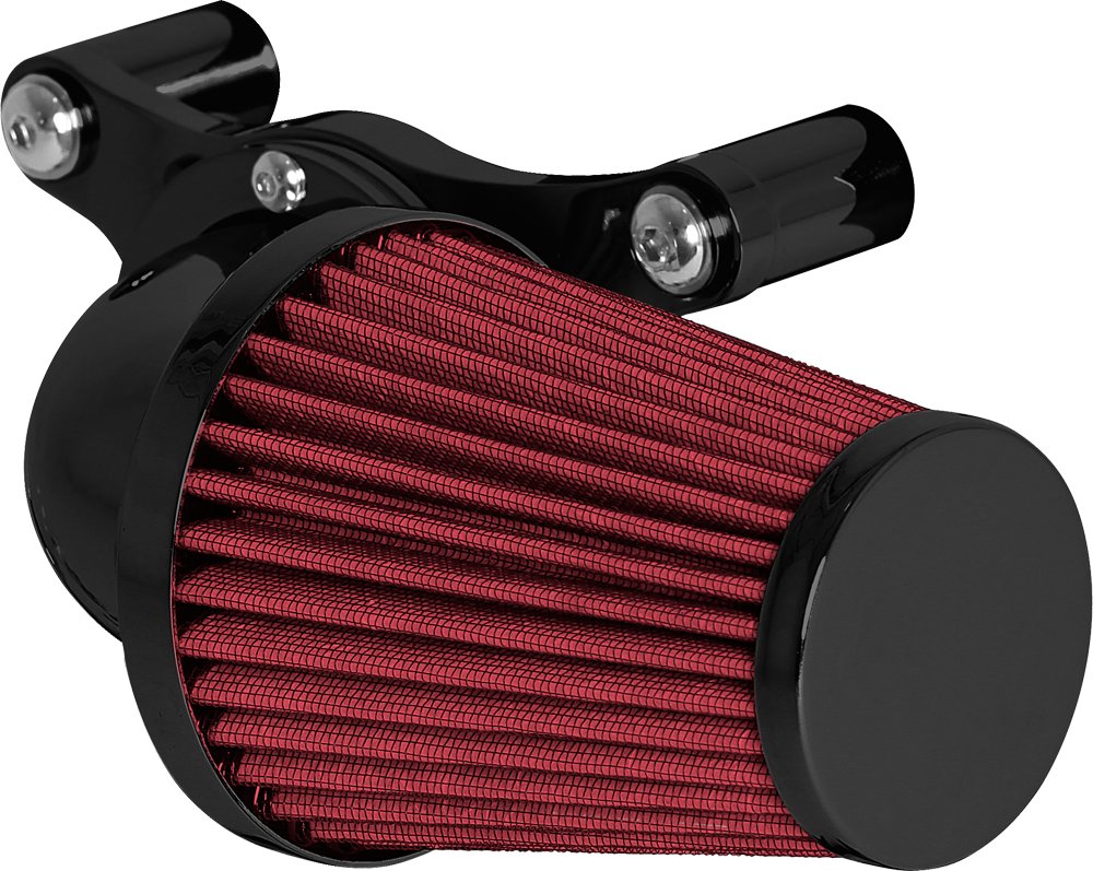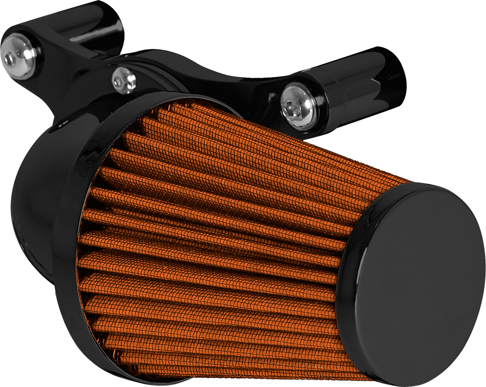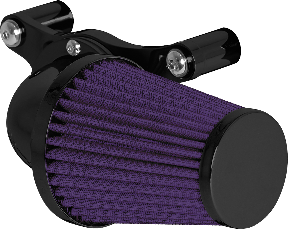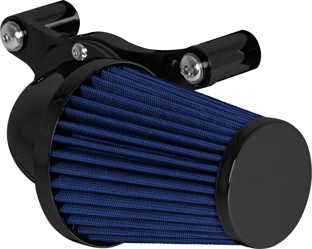 A popular choice for many riders. The swept forward design offers performance and style that lends this air cleaner to the top of our list. Attention to detail is abundant from the design to the manufacturing process. The deep pleated air filter is sized proportionately allowing for greater air flow while maintaining rider comfort. A mandrel bent elbow and billet aluminum mounting kit are the remaining components that complete this air cleaner assembly.