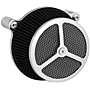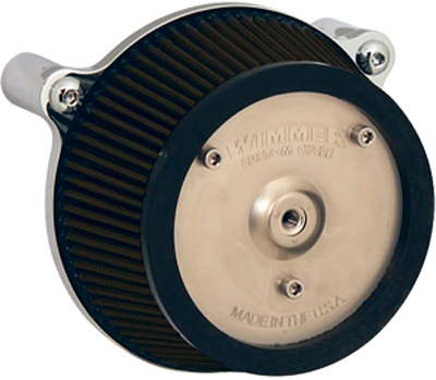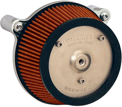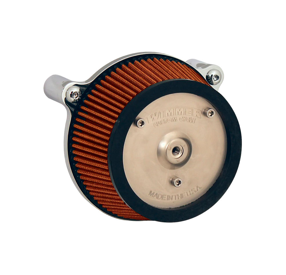 Performance and affordability are what make this a top selling air cleaner. Features include a billet aluminum back plate which provides better strength – eliminating broken, cast back plates that plague similar setups. Machined into each back plate sits a recessed pocket that encapsulates the performance air filter base, minimizing the unsightly look of the air filter base. The performance filter measures 2.75” deep, providing ample clean air to the oversized radius inlet. Head breathing is provided thru an internal passage in the back plate – providing a clean and practical solution. Better Sucker kits are available in black powder coat or chrome finish, five filter colors, will accept the factory Twin Cam "oval style" air cleaner cover, Wimmer Custom Cycle’s exclusive AirStar covers, or similar aftermarket covers that use a 5.5 inch diameter and center mounting screw. Covers sold separately.