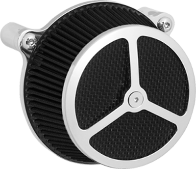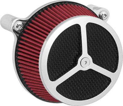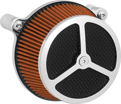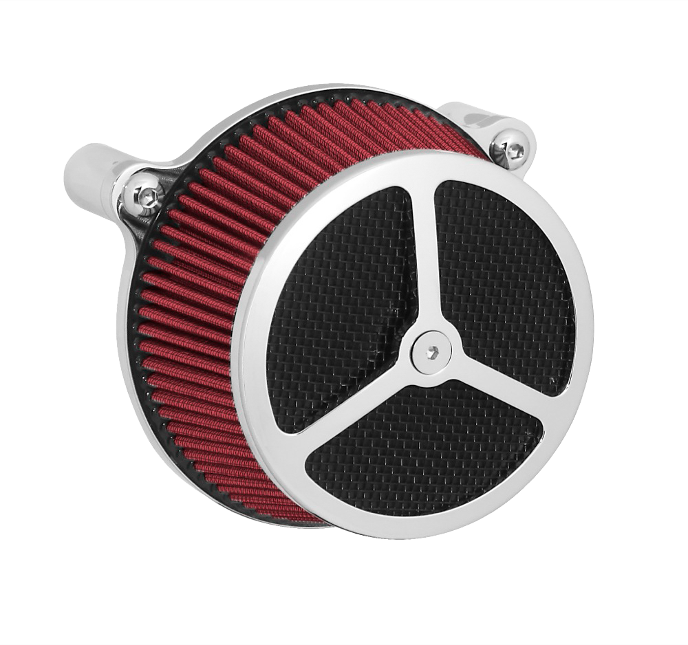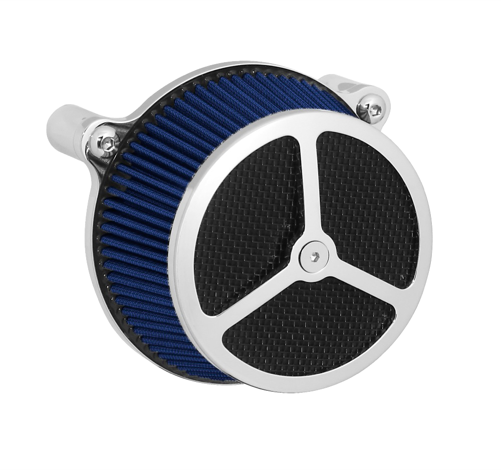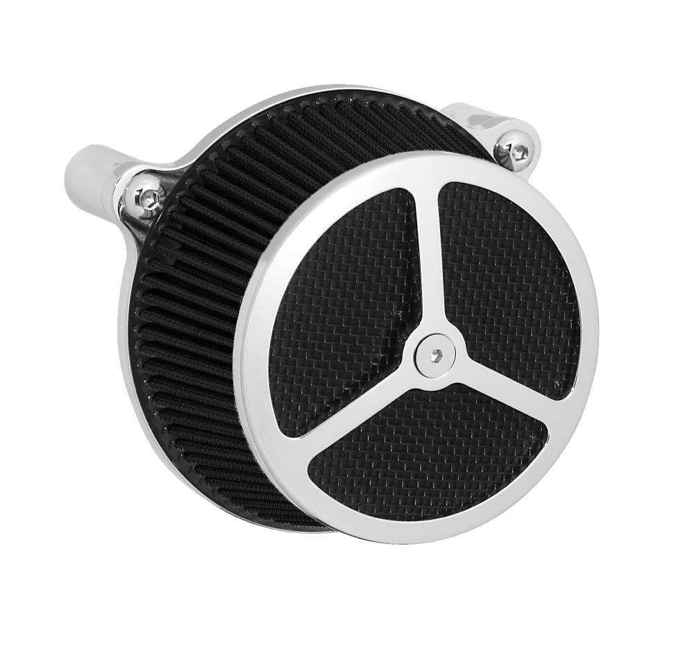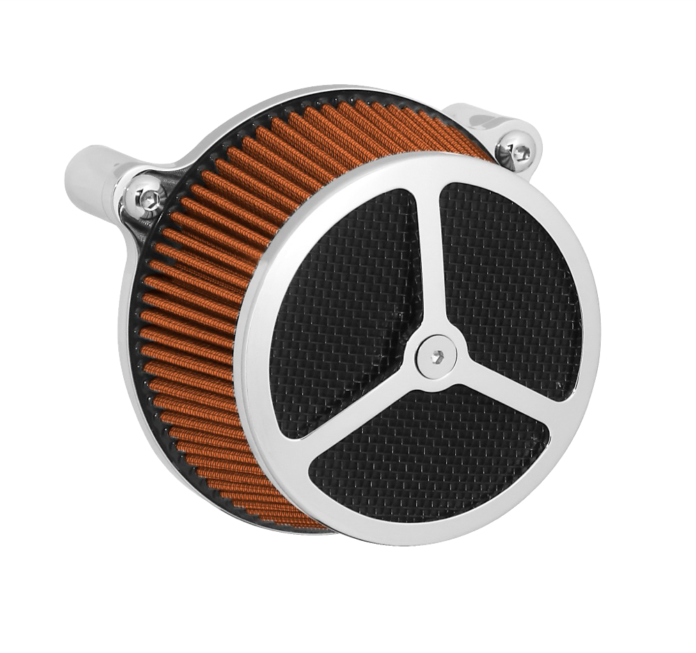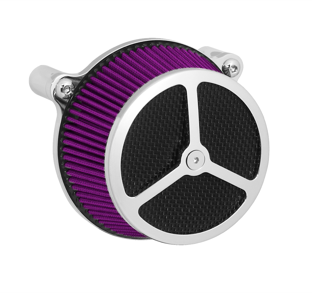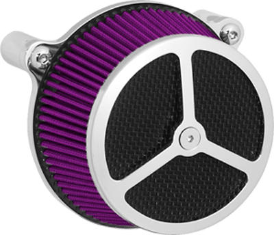 Performance and affordability are what make this a top selling air cleaner. Features include a billet aluminum back plate which provides better strength – eliminating broken, cast back plates that plague similar setups. Machined into each back plate sits a recessed pocket that encapsulates the performance air filter base, minimizing the unsightly look of the air filter base. The performance filter measures 2.75” deep, providing ample clean air to the oversized radius inlet. Head breathing is provided thru an internal passage in the back plate – providing a clean and practical solution. At the front of the air cleaner is the exclusive Wimmer Custom Cycle Air Star cover. Finely crafted and machined from a solid block of billet aluminum is your choice of a 3 or 5 spoke pattern. Beneath the billet cover lays the dutch woven stainless steel screen and plastic insert. Better Sucker with Air Star Cover kits are available in black powder coat, re-machined black, or show chrome. Five filter colors, stainless steel dutch woven screen, or black powder coat screen finish off the options.