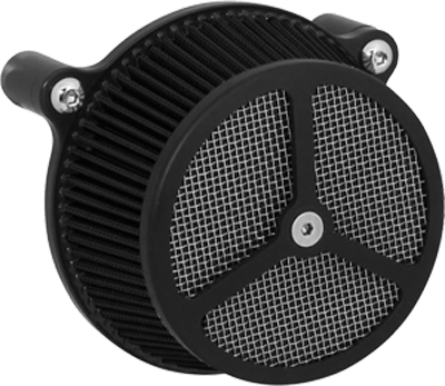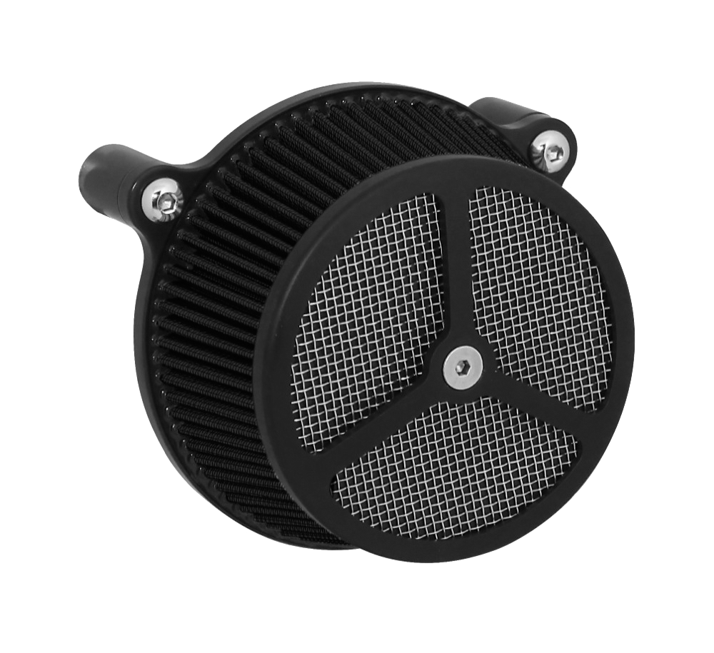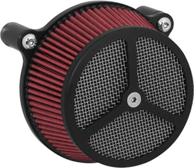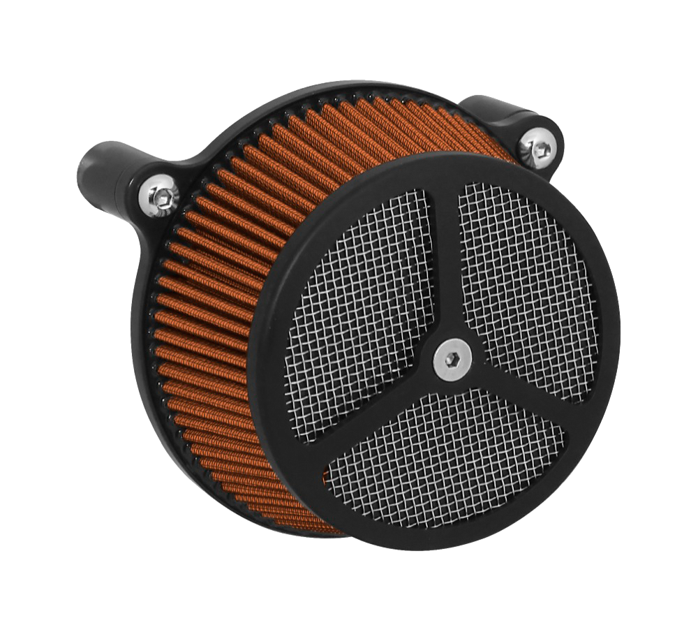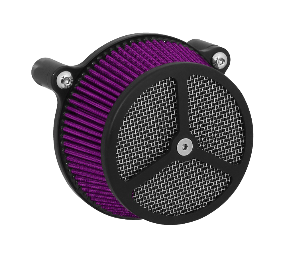 Performance and affordability are what make this a top selling air cleaner. Features include a billet aluminum back plate which provides better strength – eliminating broken, cast back plates that plague similar setups. Machined into each back plate sits a recessed pocket that encapsulates the performance air filter base, minimizing the unsightly look of the air filter base. The performance filter measures 2.75” deep, providing ample clean air to the oversized radius inlet. Head breathing is provided thru an internal passage in the back plate – providing a clean and practical solution. At the front of the air cleaner is the exclusive Wimmer Custom Cycle Air Star cover. Finely crafted and machined from a solid block of billet aluminum is your choice of a 3 or 5 spoke pattern. Beneath the billet cover lays the dutch woven stainless steel screen and plastic insert. Better Sucker with Air Star Cover kits are available in black powder coat, re-machined black, or show chrome. Five filter colors, stainless steel dutch woven screen, or black powder coat screen finish off the options.