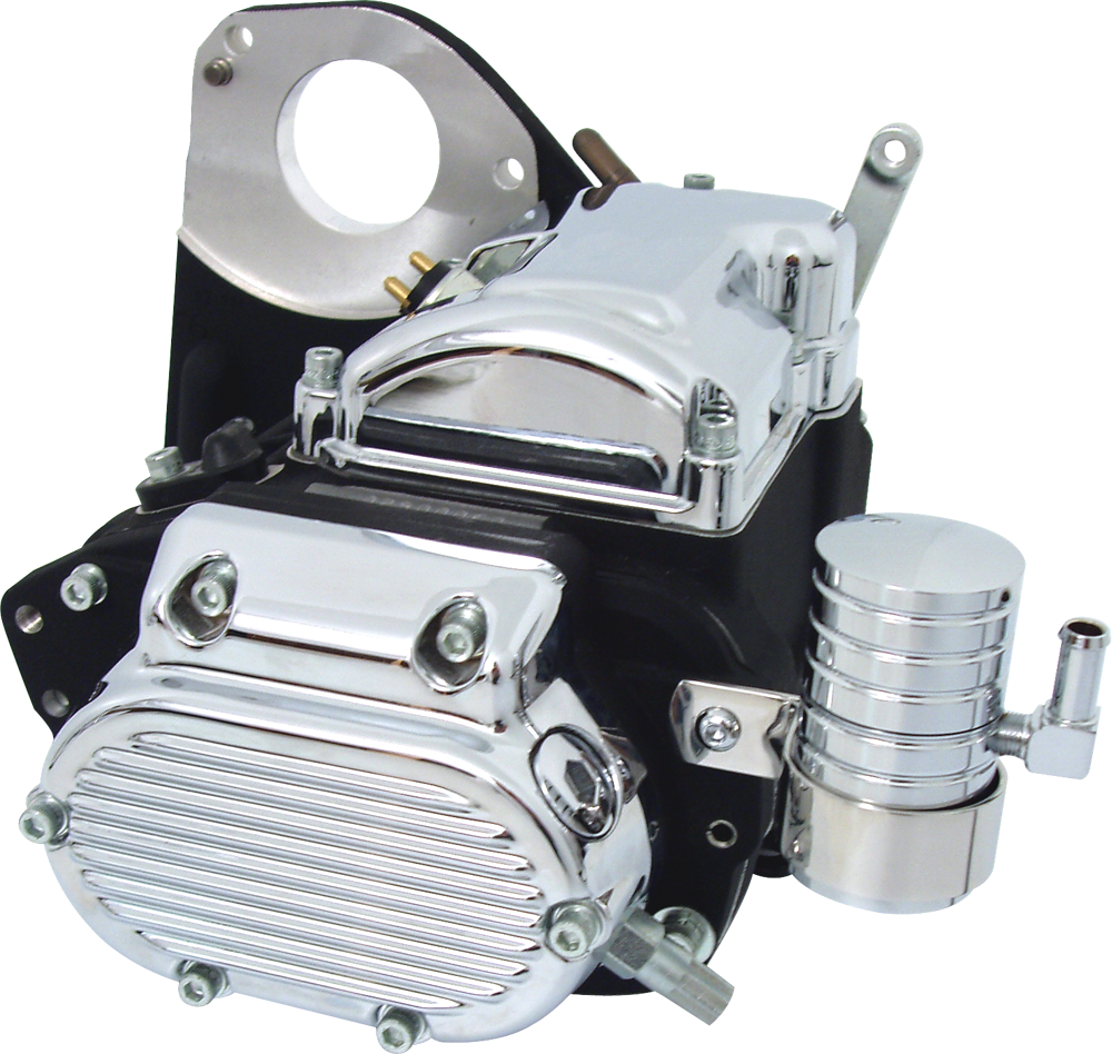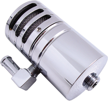 Wimmer Custom Cycle Puke Can’s offer a valuable solution to all motors prone to high volumes of blow by. Designed as a breather and catch can the top portion allows for proper motor breathing while the excess oil disperses to the below canister. Excess oil can then be drained through the pipe plug or customers can upgrade their puke can with a petcock for even easier maintenance. Standard features included billet aluminum construction, show chrome finish, accepts standard 3/8 ID oil line, and reusable filter element. Available in two mounting configurations: Frame Clamp or P Strap
